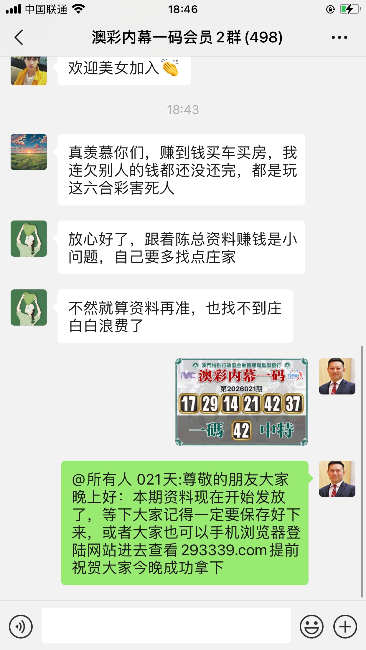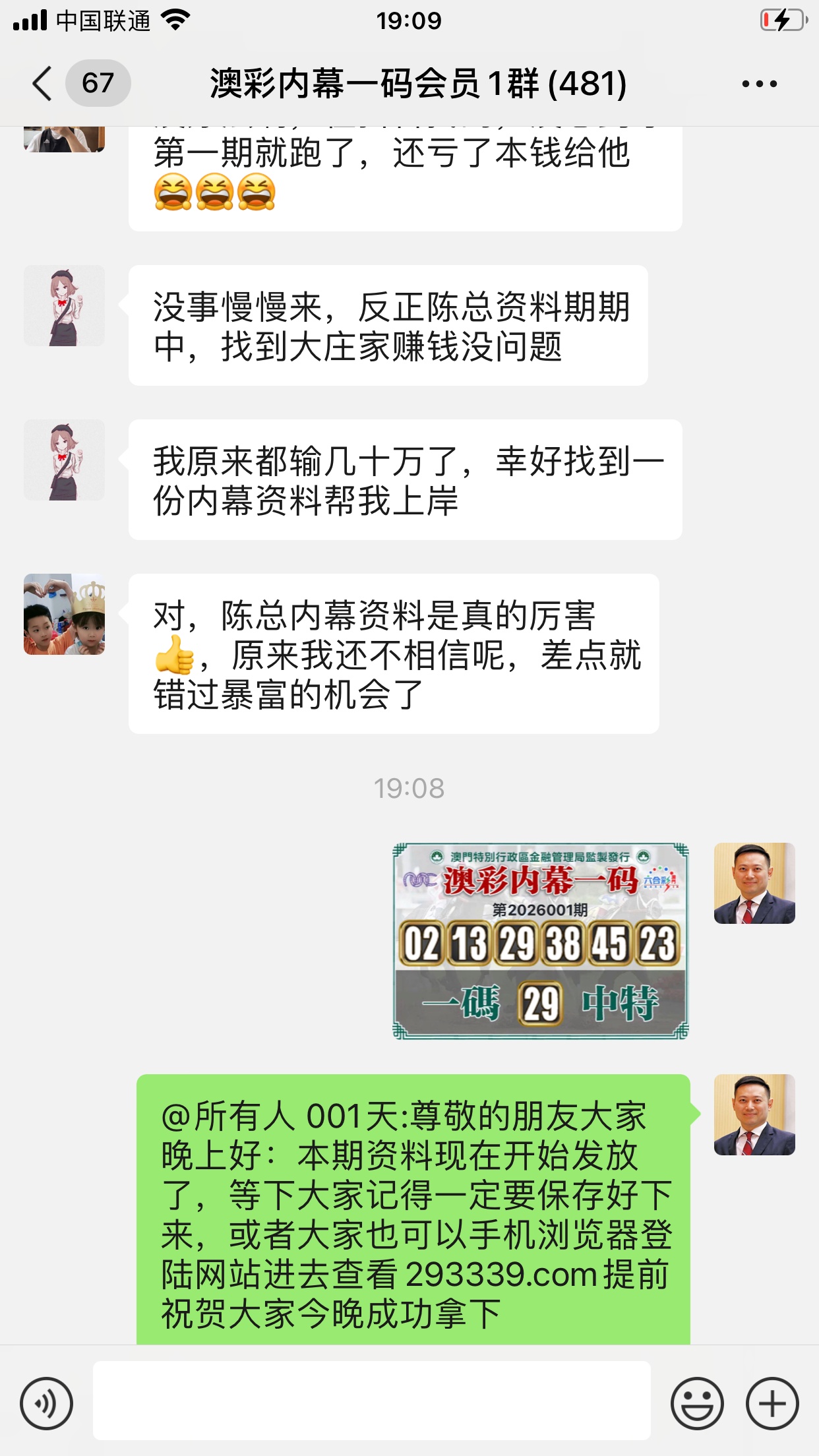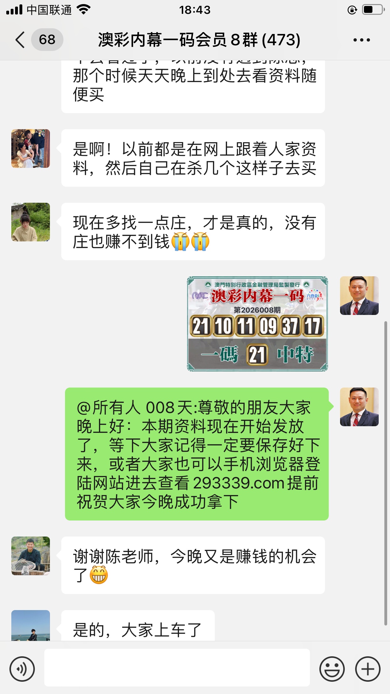 陈总您好,我是重庆的莫驰晓,会员已经到期,升级会员我都要来给您顶贴,我本来是一个小县城的,生活过得安安稳稳,后来错信朋友被骗了几十万,当时说投资,但是过段时间人都找不到了,天天心情很沮丧,从那时候开始我的生活就完全被打乱了,各种信用卡网贷每天不停的打电话催还钱,后来单位同事见到我这么困难就介绍了您的澳彩内幕一码网站给我,因为他之前在贵公司办理过会员,当时也赢了不少钱,看到陈总您的网站我就毫不犹豫办理了会员,直到现在我的生活也回复了正常,给您发了红包记得查收,真的非常感谢您。