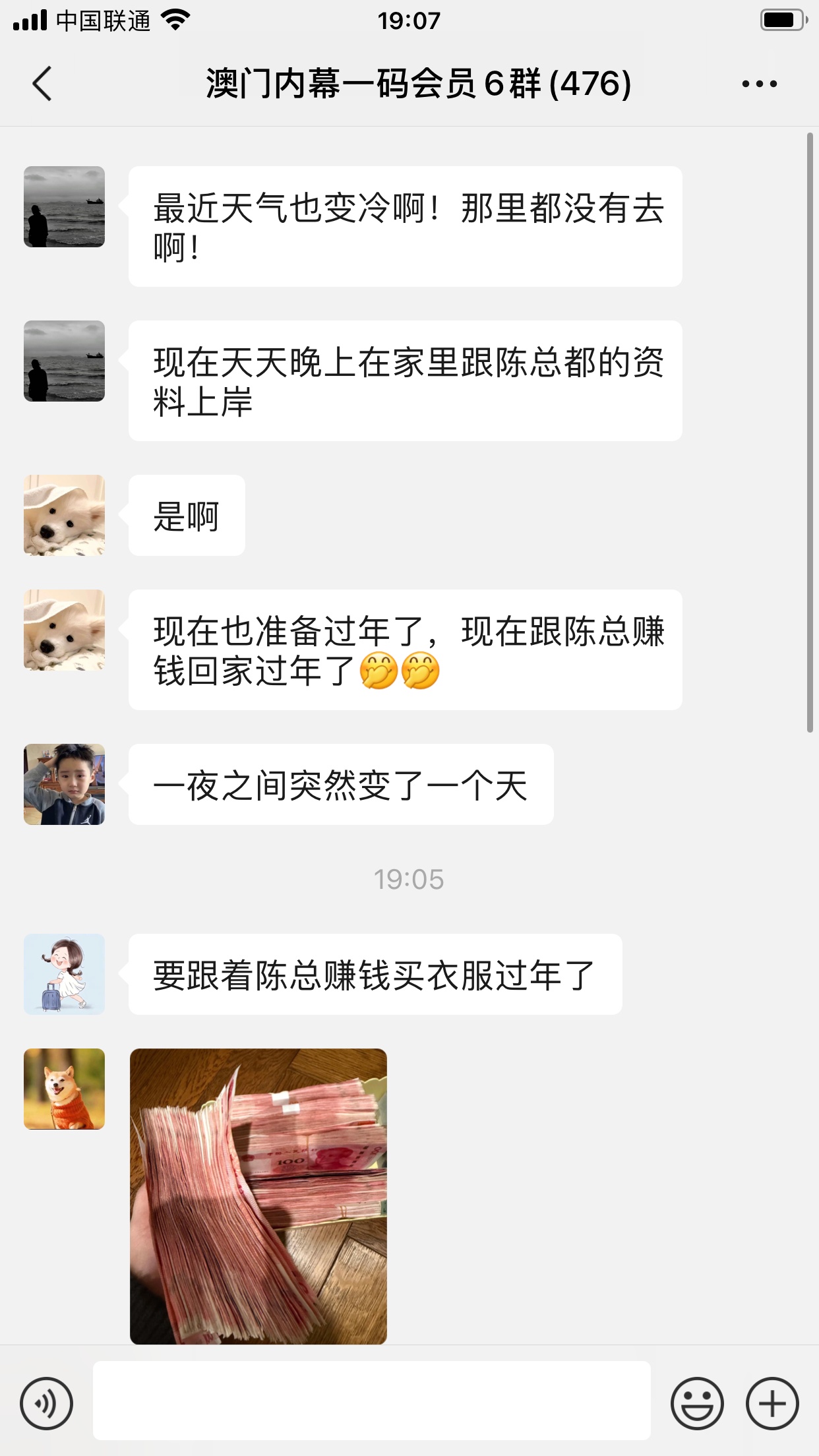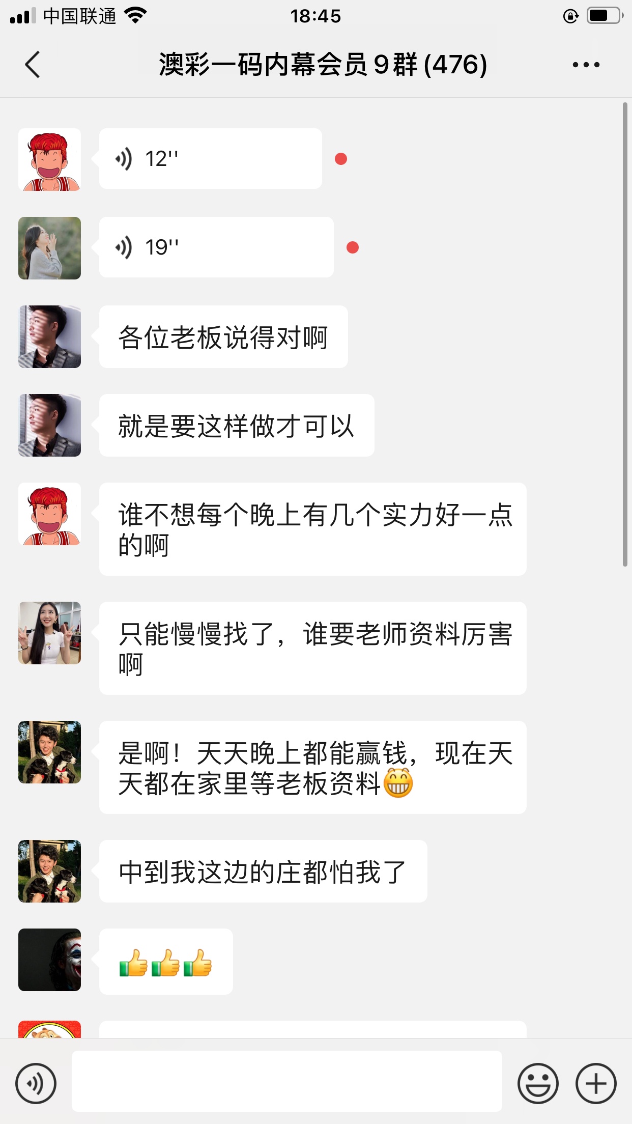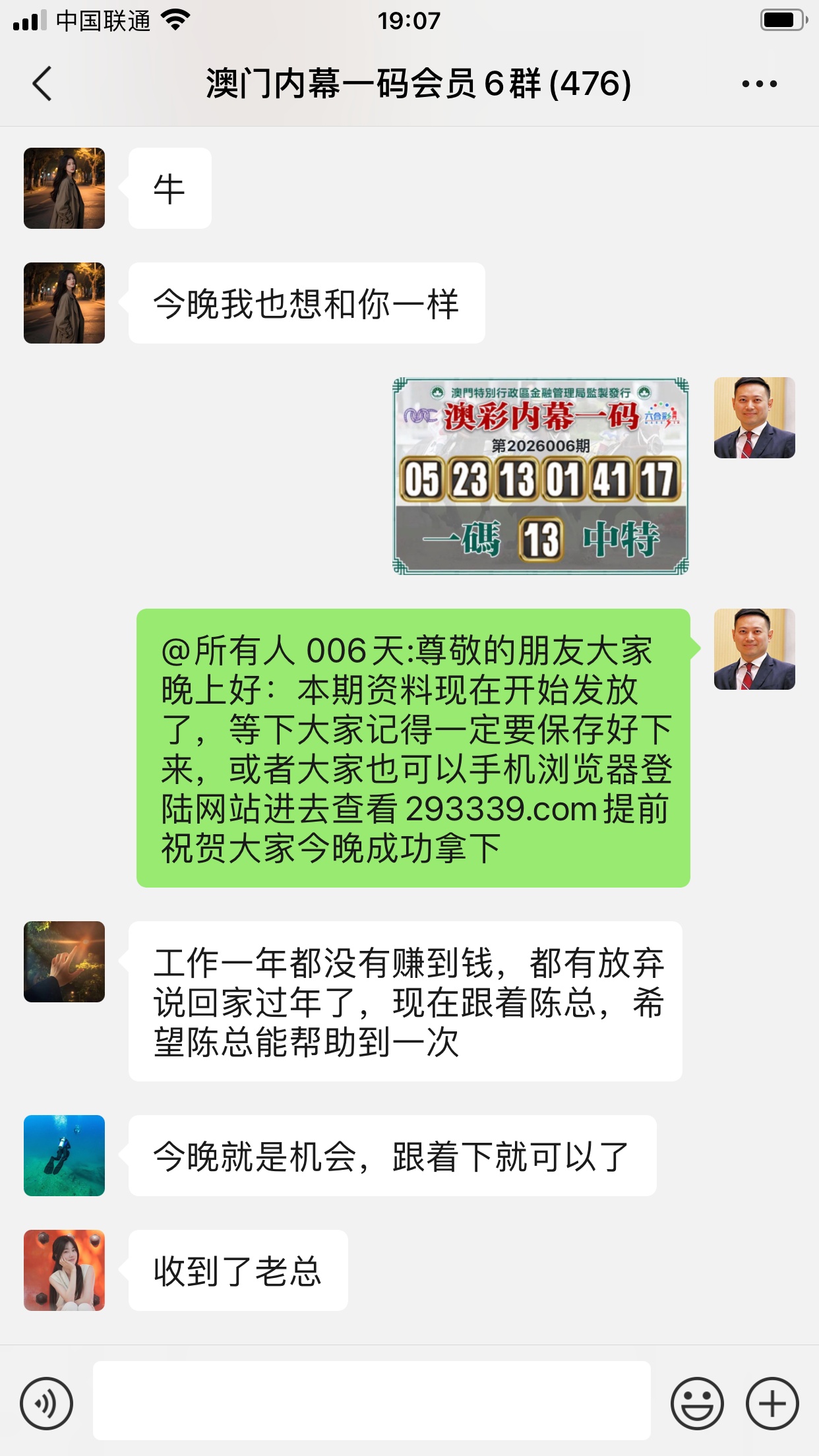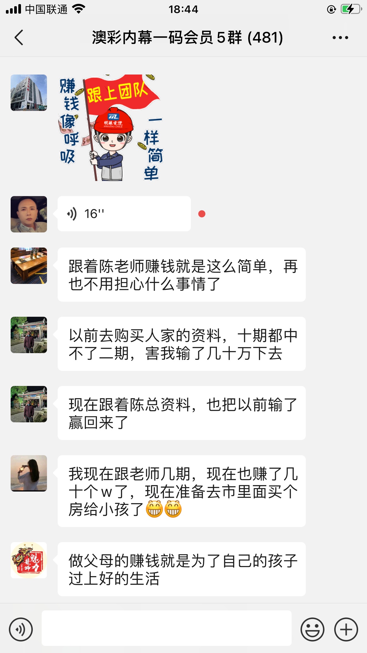 陈总你的资料太准了,昨晚中的钱刚从庄家那里拿回来,没找你之前输了十几万了,昨晚总算中回来一点了,以后就跟着你赚钱了。红包少不了你的,等我还清债务就发大红包感谢陈总!
