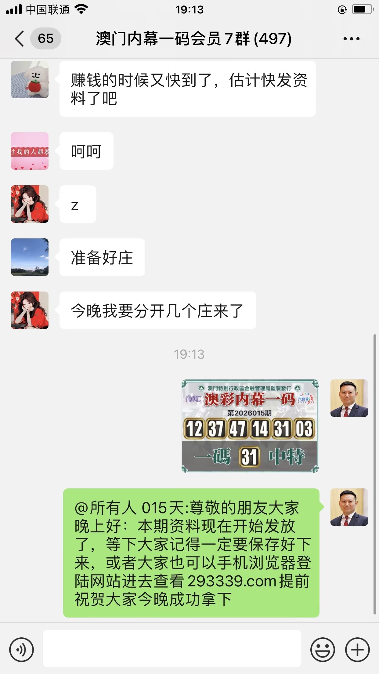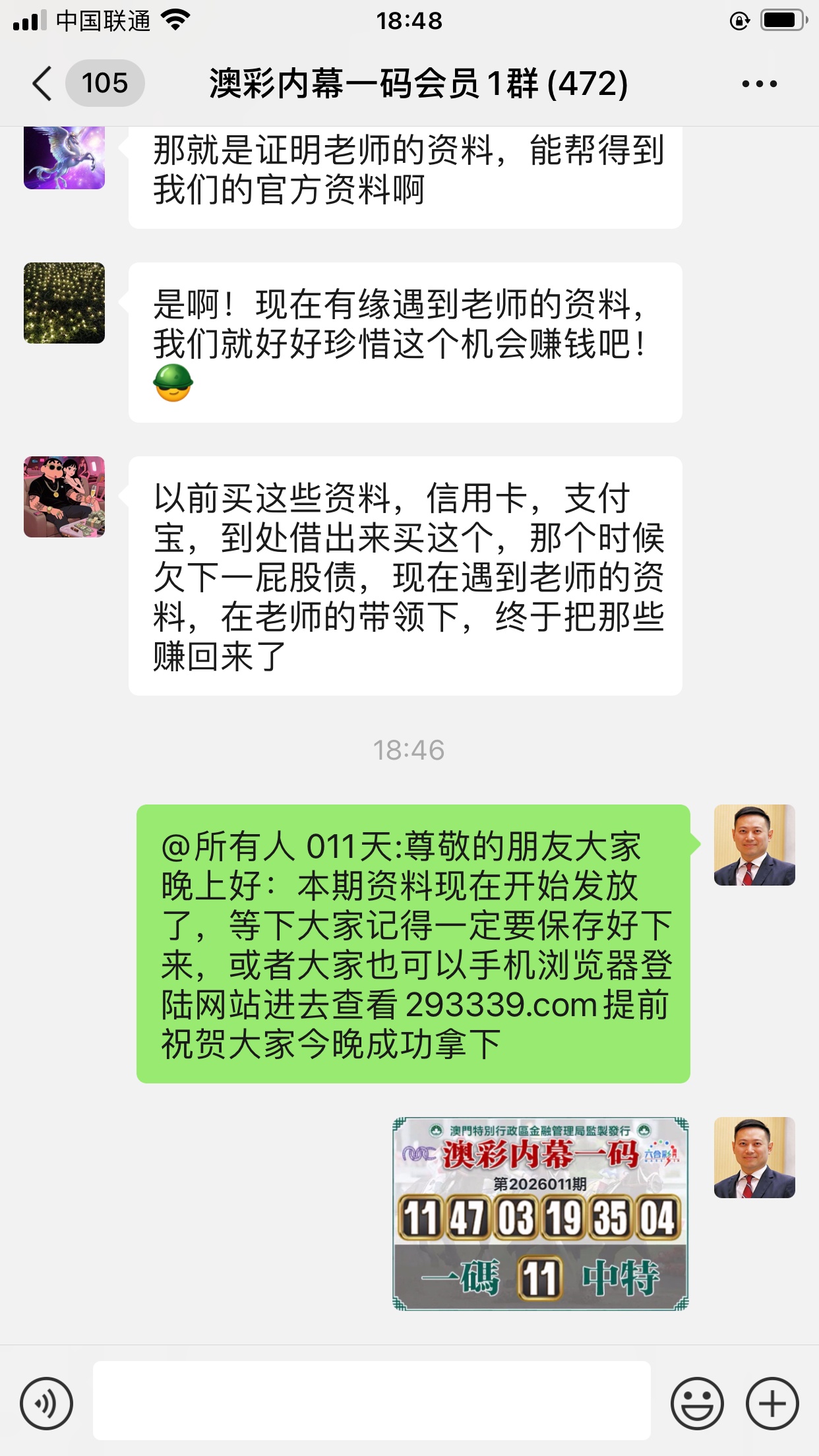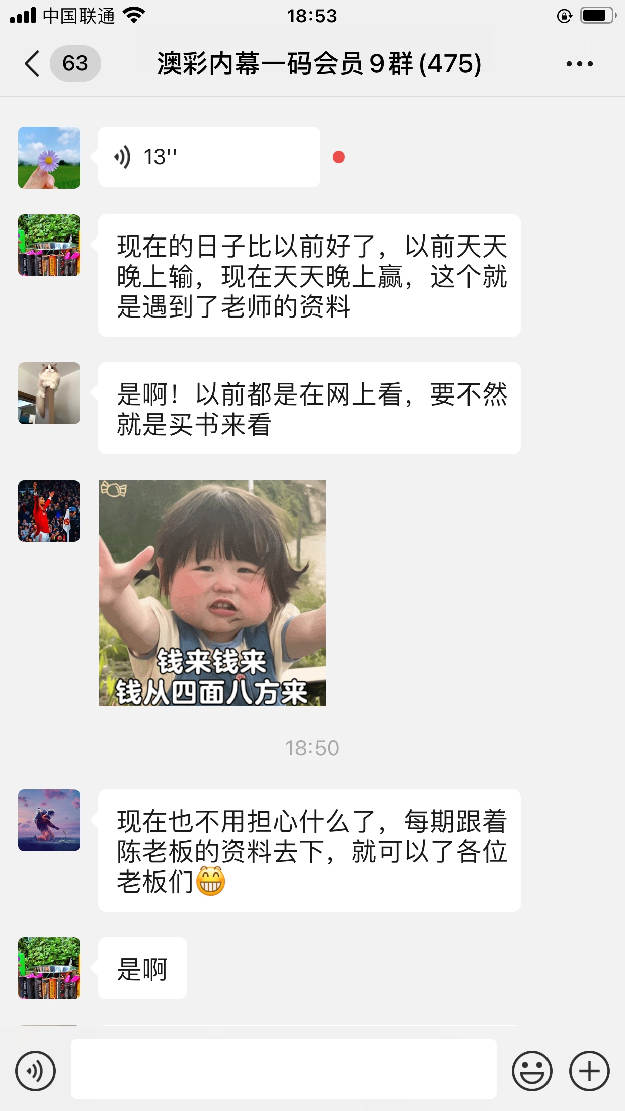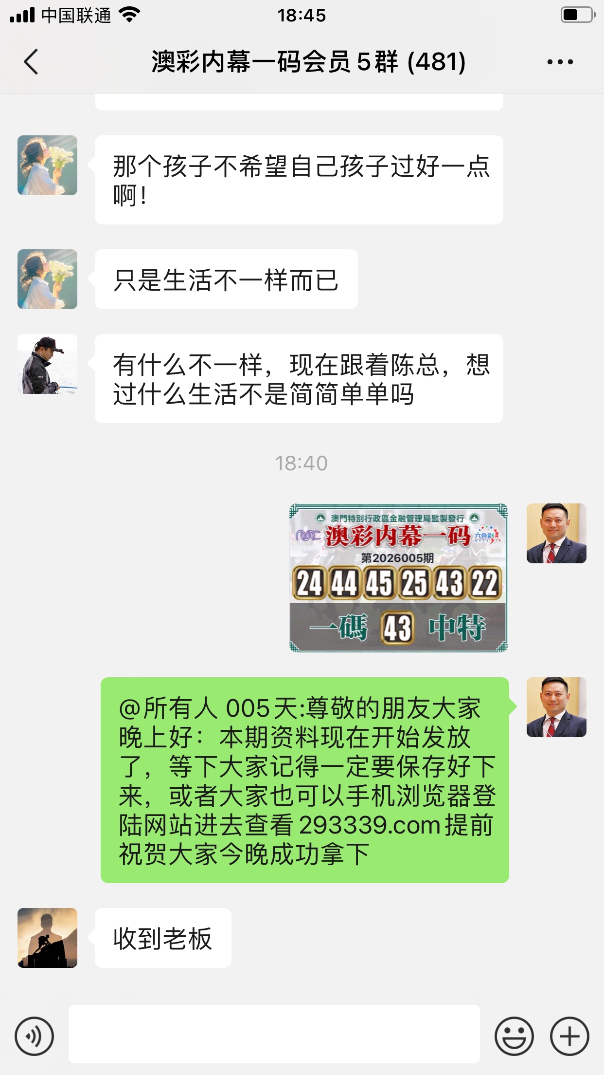 陈总你的资料太准了,昨晚中的钱刚从庄家那里拿回来,没找你之前输了十几万了,昨晚总算中回来一点了,以后就跟着你赚钱了。红包少不了你的,等我还清债务就发大红包感谢陈总!