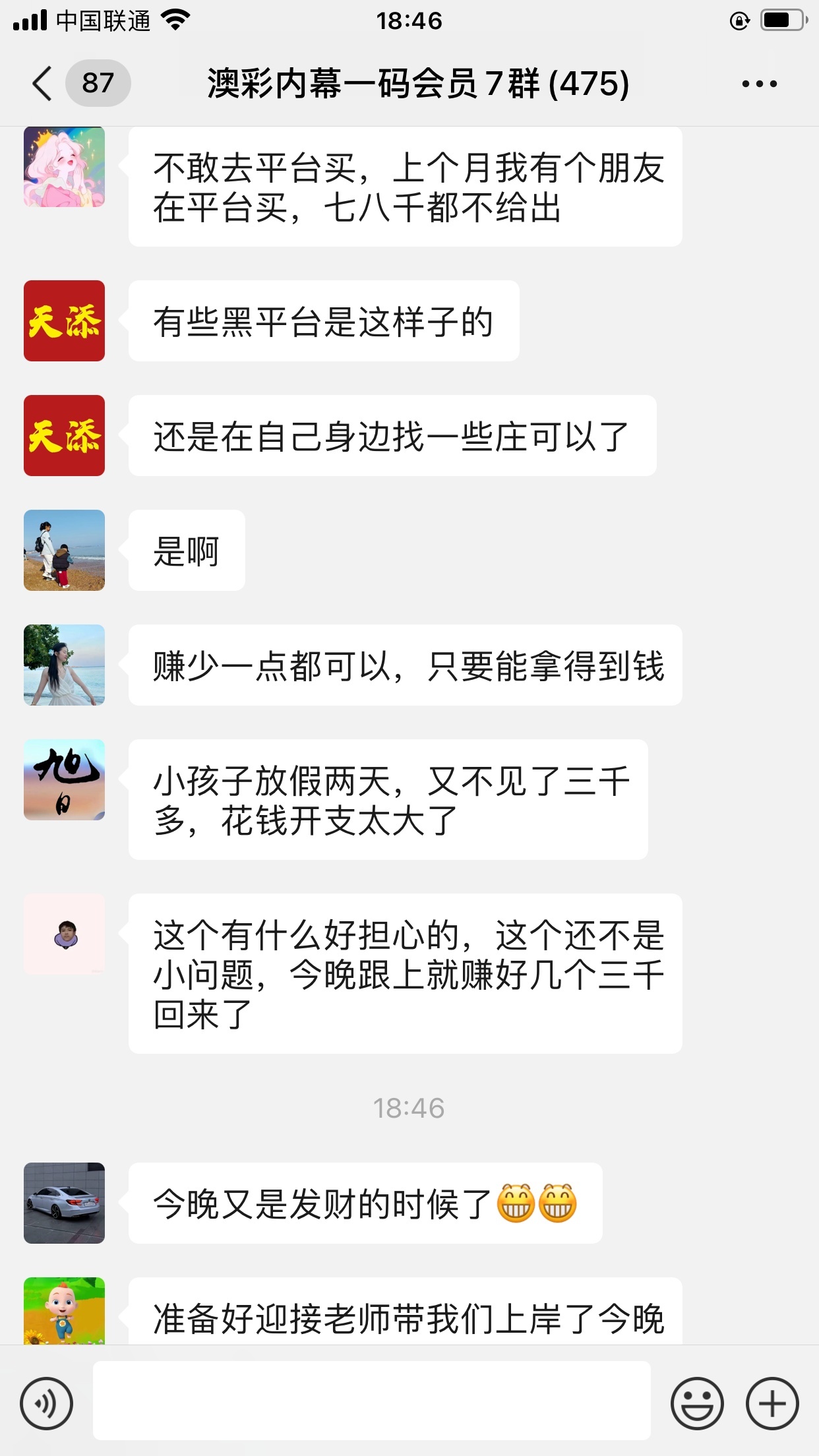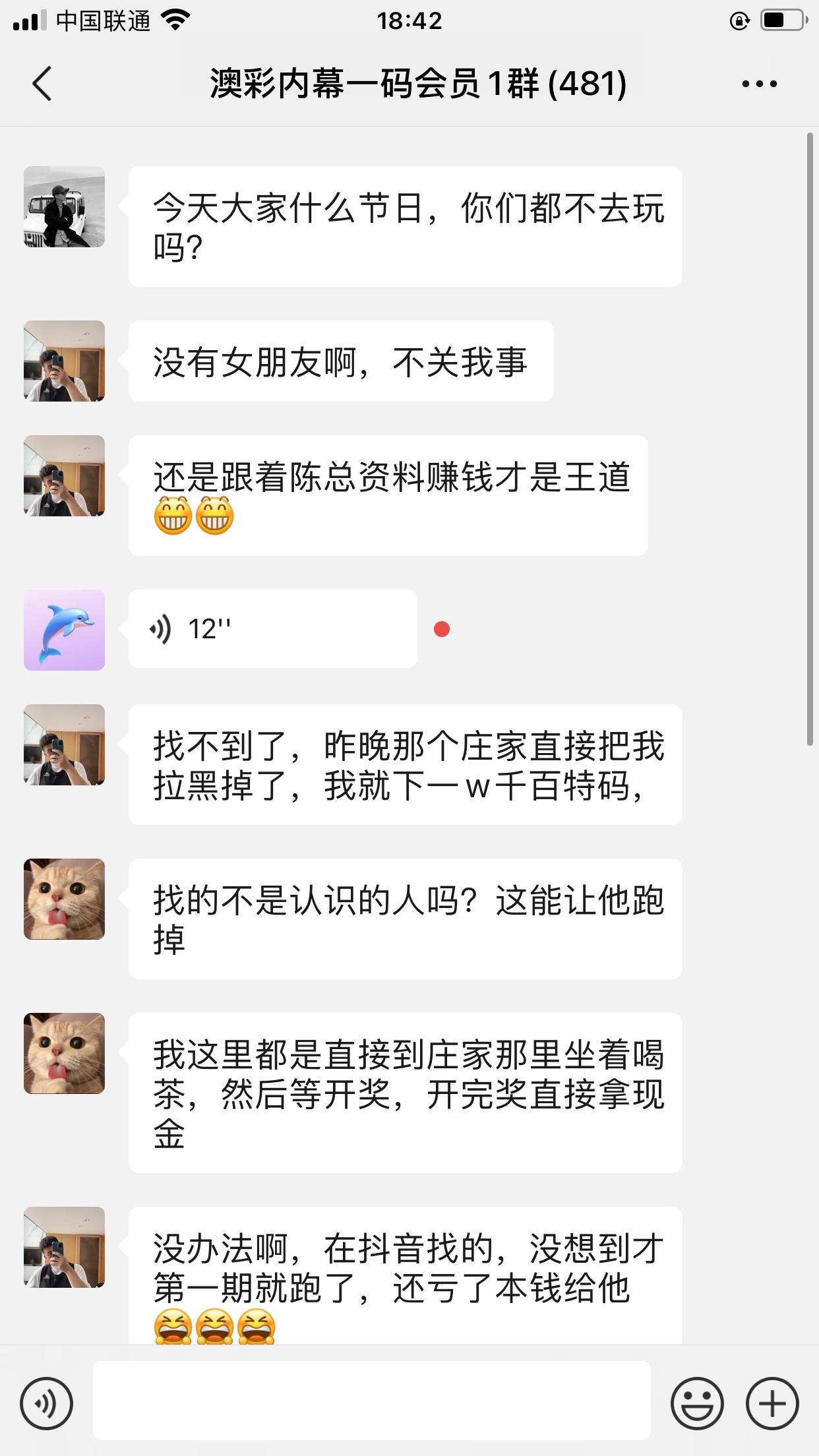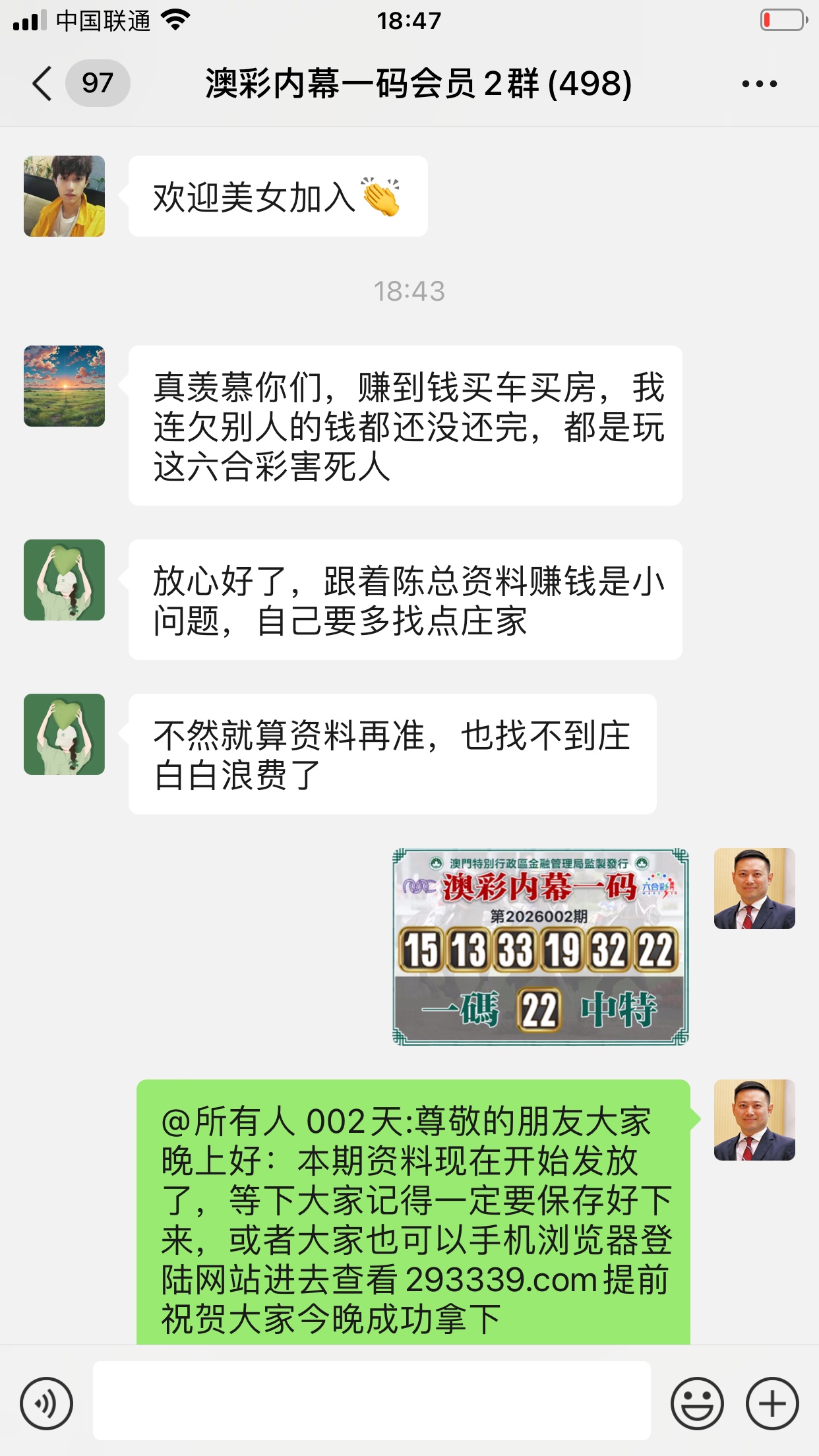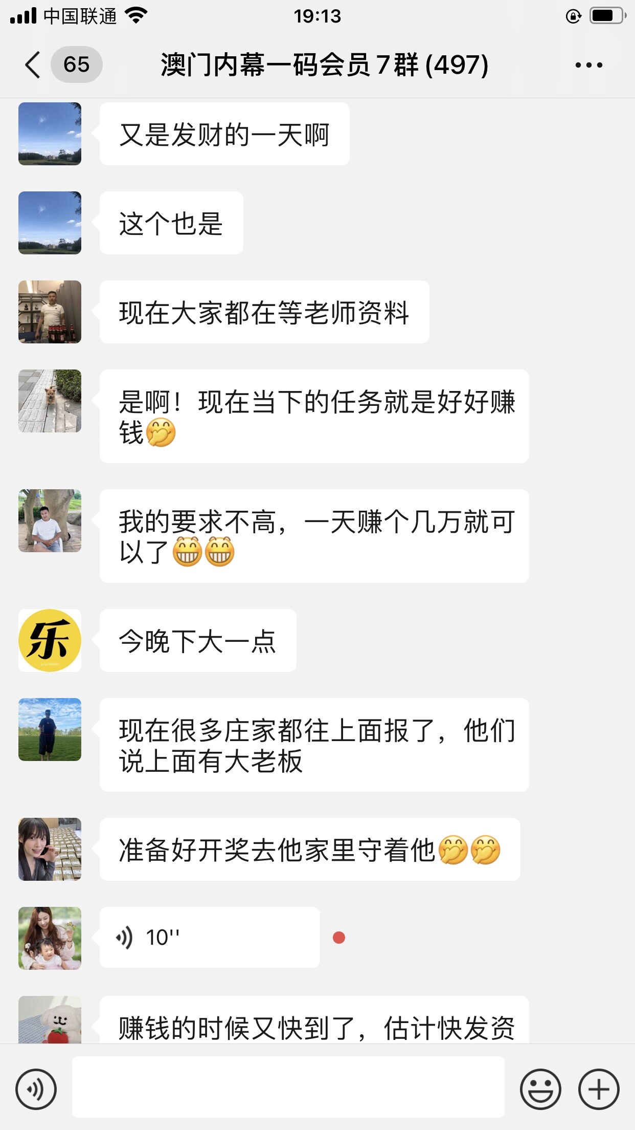 陈总你的资料太准了,昨晚中的钱刚从庄家那里拿回来,没找你之前输了十几万了,昨晚总算中回来一点了,以后就跟着你赚钱了。红包少不了你的,等我还清债务就发大红包感谢陈总!